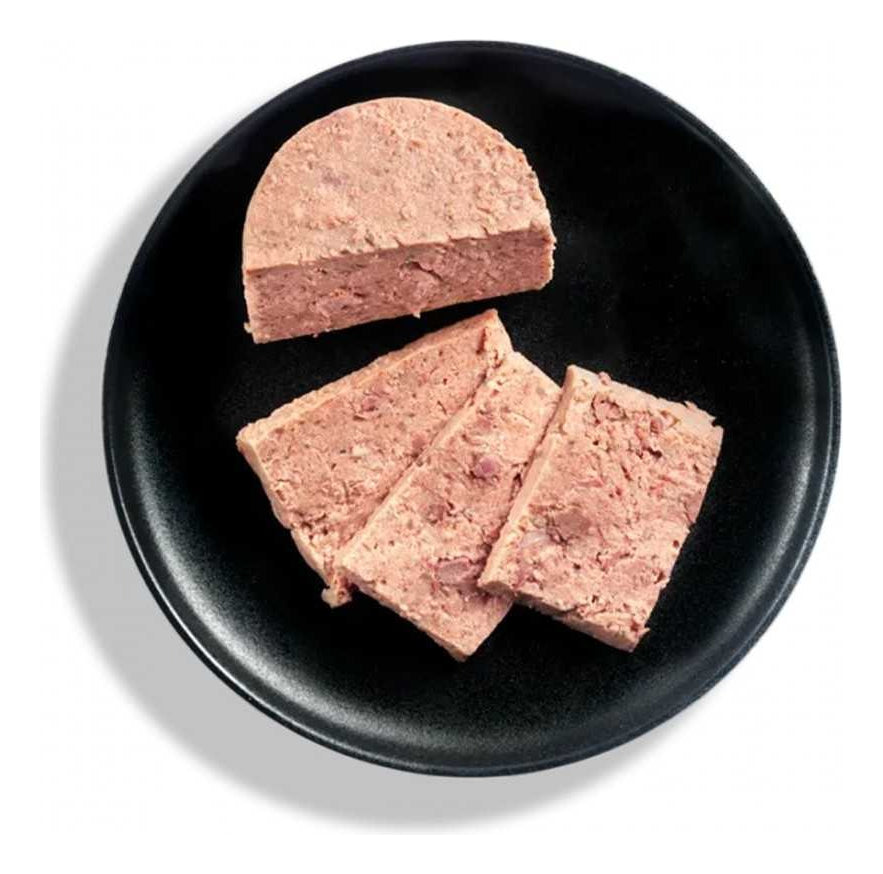 Carne, corazón, hígado y mollejas de ave (66 %); caldo de carne de ave (27,5 %); huevo entero (4 %); semillas de chía (1 %); minerales (1 %); aceite de cardo (0,5 %).