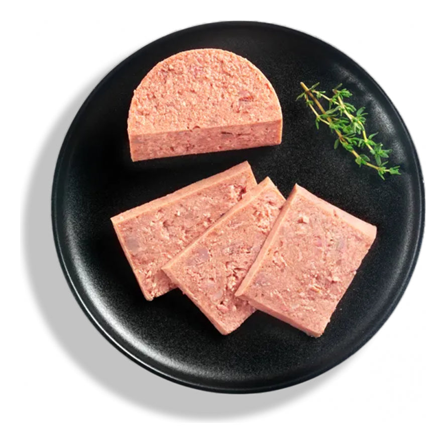 Carnes y subproductos animales (65 % ave + caldo de ave 34 %); minerales (1 %); cáscaras de huevo, secas (0,5 %).