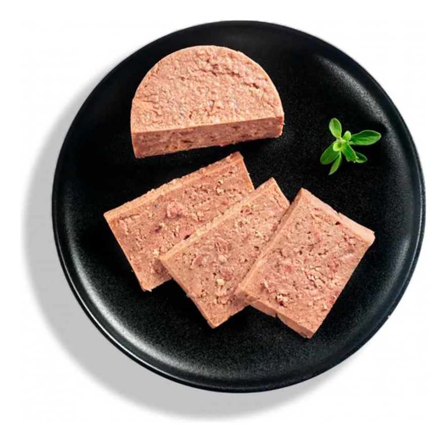 Carnes y subproductos animales (40 % + caldo de carne 34 %); pescados y subproductos de pescado (25 % pescado marino); minerales (0,5 %); cáscaras de huevo, secas (0,5 %).